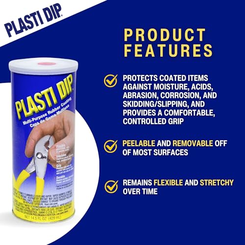 - EASY TO APPLY & MULTI-PURPOSE – Ideal for DIY automotive projects, tool dip rubber coating, and adding a durable finish on equipment. Plasti Dip applies smoothly, creating a durable layer on various surfaces for a clean, professional appearance.