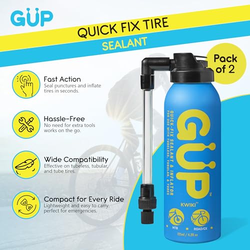 G U P Kwiki Quick Fix Tire Sealant and Inflator 2 Pack | Instantly Seals and Inflates Tubeless or Tubed Tires for Mountain, Road, Gravel Bikes | Hose Top Adapter for Schrader and Presta Valves
