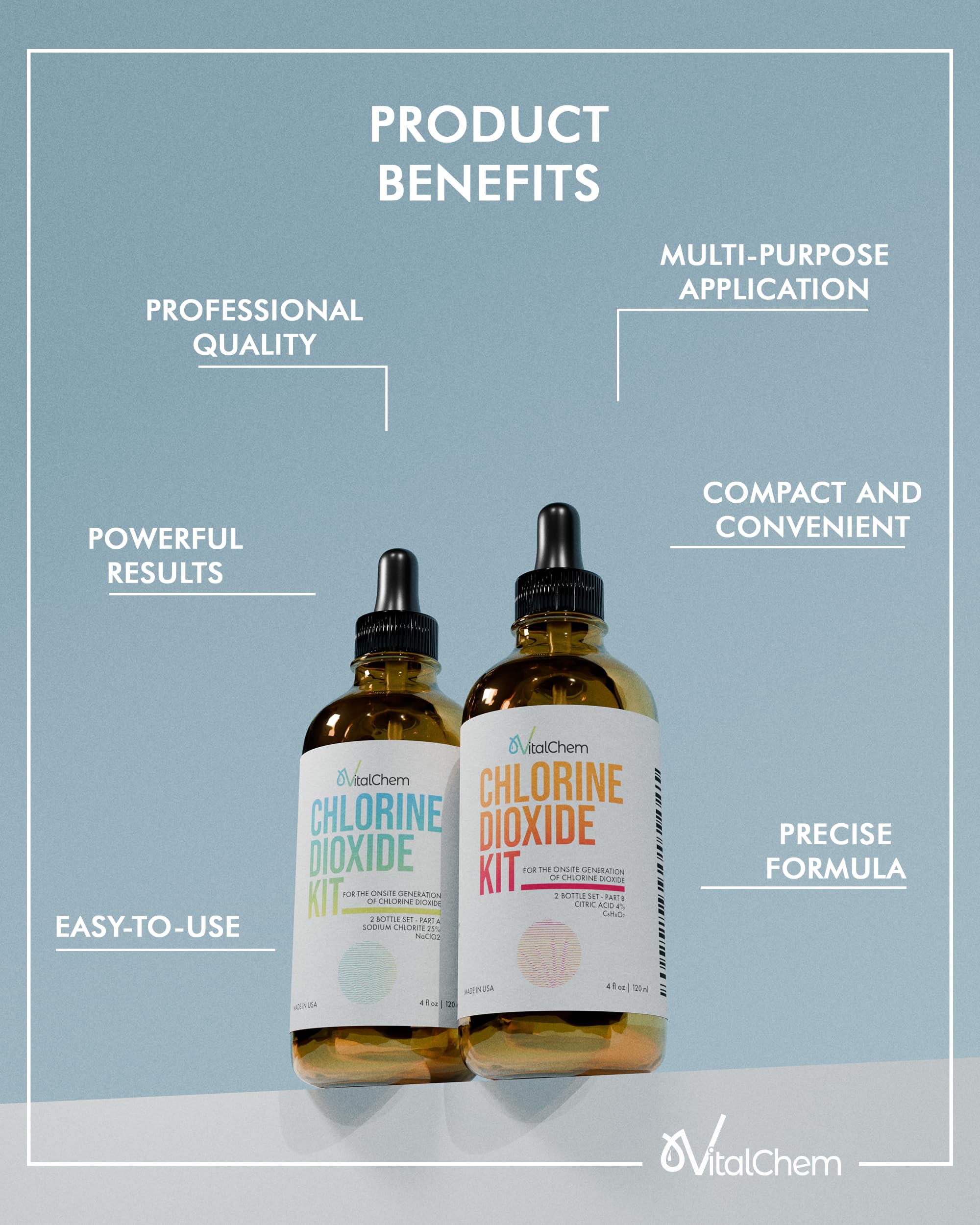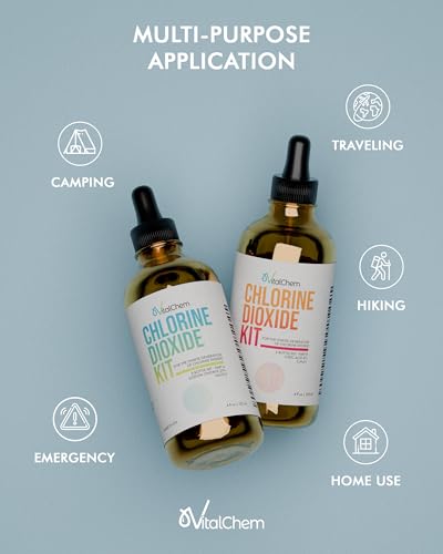 VitalChem Chlorine Dioxide Kit | Glass Bottles with Droppers | Citric Acid 50% and Sodium Solution | 8 oz Total