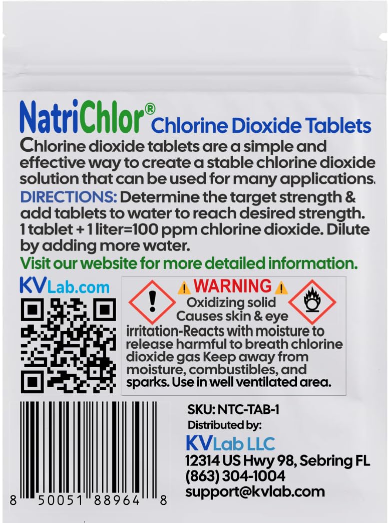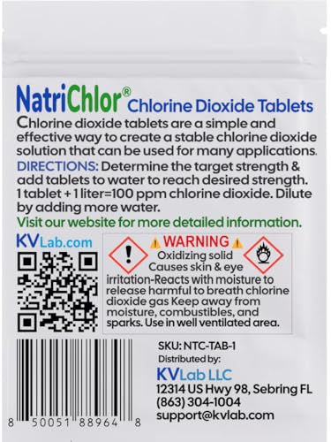 - Each tablet results in 1 L of water at 100 ppm of chlorine dioxide solution.