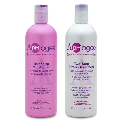 Aphogee Hair Care Double Bundle – Two-Step Protein Treatment (16 fl oz) & Balancing Moisturizer (16 fl oz)